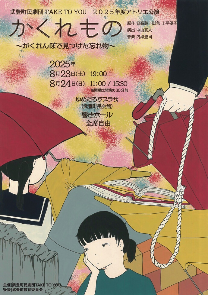 2025年 8月23日・24日 アトリエ公演「かくれもの~かくれんぼでみつけた忘れ物~」チラシ表面 (Jpeg 256.8KB)