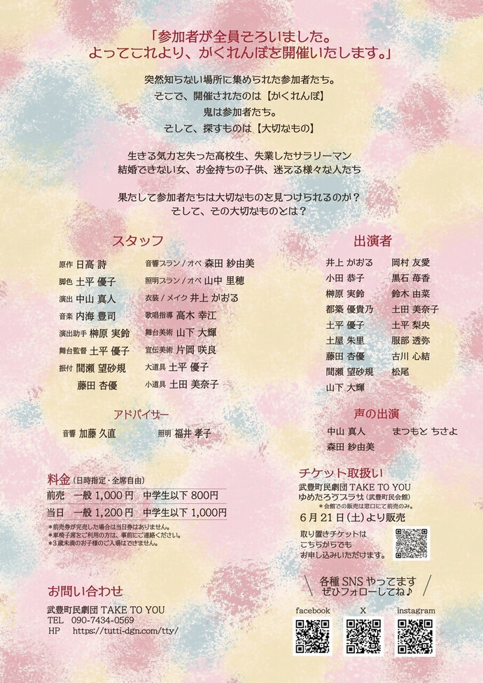 2025年 8月23日・24日 アトリエ公演「かくれもの~かくれんぼでみつけた忘れ物~」チラシ裏面 (Jpeg 254.8KB)